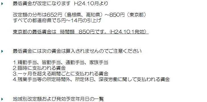 最低賃金が改定になります H24.10月より